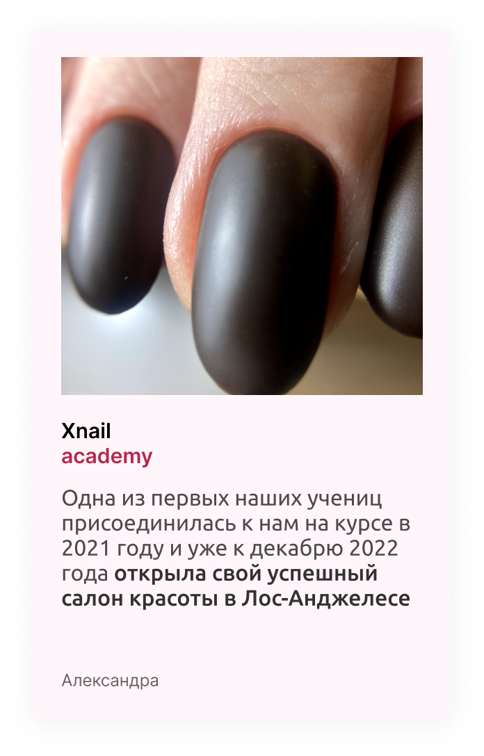 Мы основали успешную сеть салонов красоты Xnail, и уже более 4 лет помогаем клиентам выглядеть на все 100%